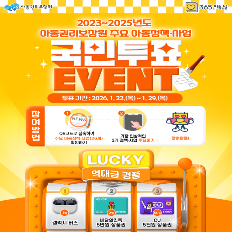 23~25년 아동권리보장원 주요 아동정책사업 대국민 투표 이벤트
